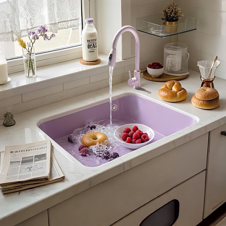 อ่างล้างจานครัวสีม่วงควอตซ์ขนาดใหญ่แบบชิ้นเดียวหลากสีสัน อ่างล้างผักแบบไร้รอยต่อ