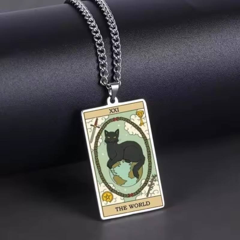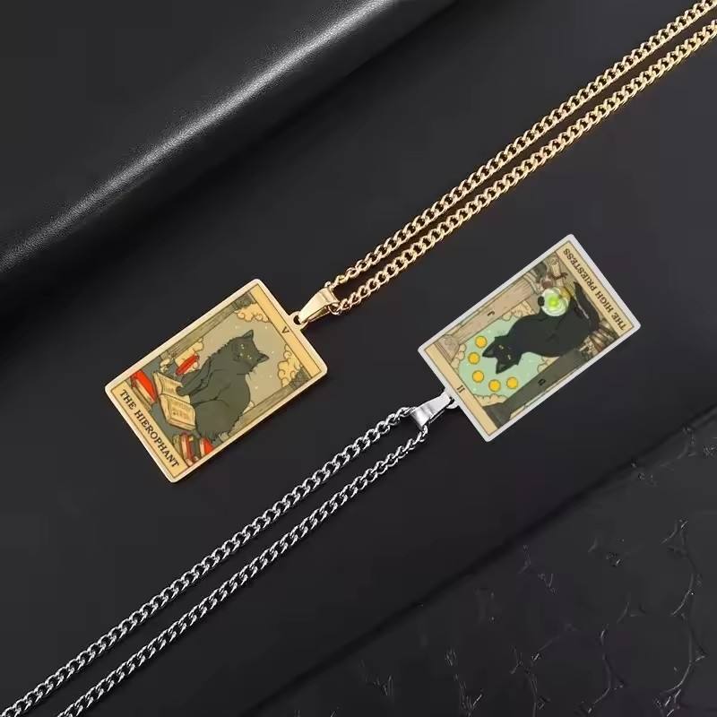 จี้ไพ่ทาโรต์การ์ดสร้อยคอมายากลแมวไพ่ทาโรต์เครื่องประดับความมั่งคั่งเครื่องรางไพ่ทาโรต์คลาสสิกเครื่องประดับการทำนายของชาวอาร์คานา