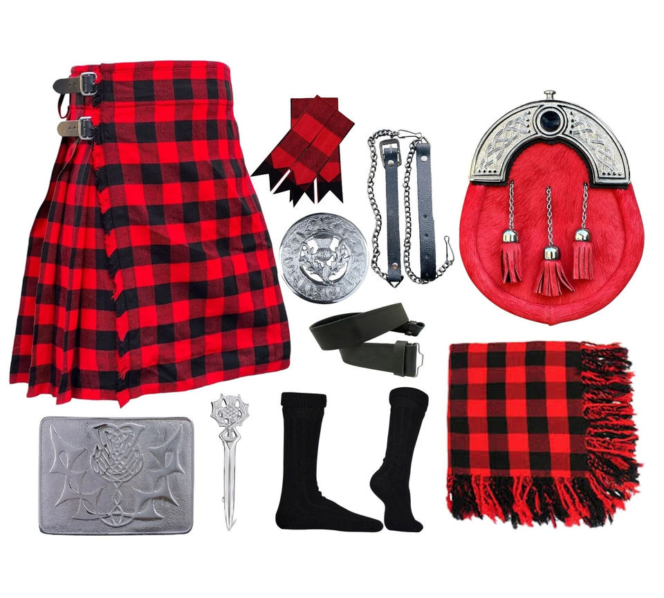 ชุดกิ๊ลต์ลายสก็อตสำหรับผู้ชาย ชุดสก็อตสีเขียว ชุดกิ๊ลต์ลายสก็อตพร้อมอุปกรณ์เสริม