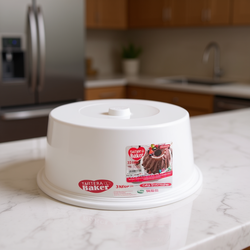 กล่องเก็บเค้กสำหรับงานเลี้ยง Tartera Baker ขนาด 32 ซม. สีขาว ดีไซน์มินิมอล ผลิตจากพลาสติกฉีดขึ้นรูป พร้อมฝาปิดกันความชื้น