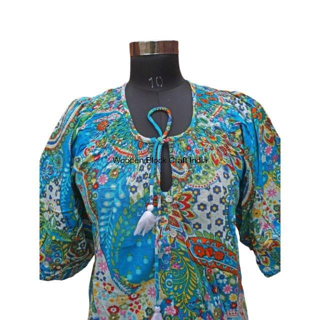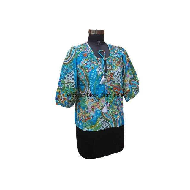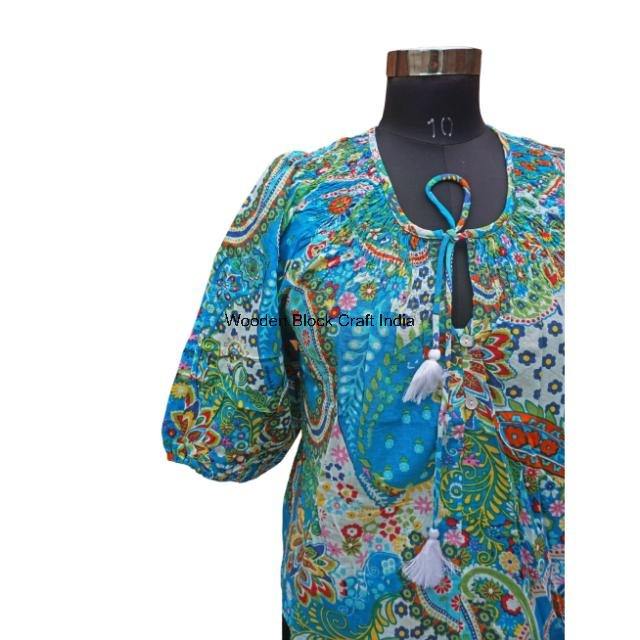 เสื้อ100% คอตตอนคอกลมแต่งพู่พิมพ์ลายดอกไม้วินเทจสวยงามแขนพองเป็นมิตรกับสิ่งแวดล้อมสำหรับสำนักงานวิทยาลัยแบบลำลอง