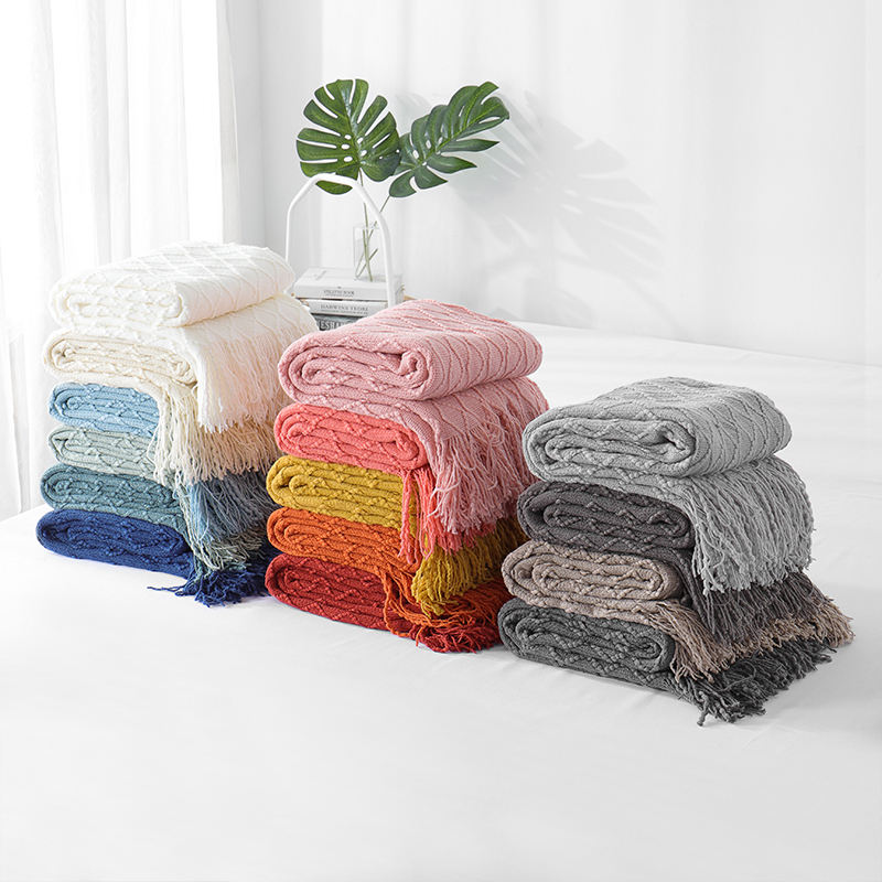 ผ้าห่มพู่ห้อยตกแต่ง ผ้าถักลายเคเบิล สีเหลือง อะคริลิก ผ้าเนื้อสัมผัสแบบเรียบ สำหรับตกแต่งบ้าน เก้าอี้ โซฟา เตียง สไตล์สแกนดิเนเวียน