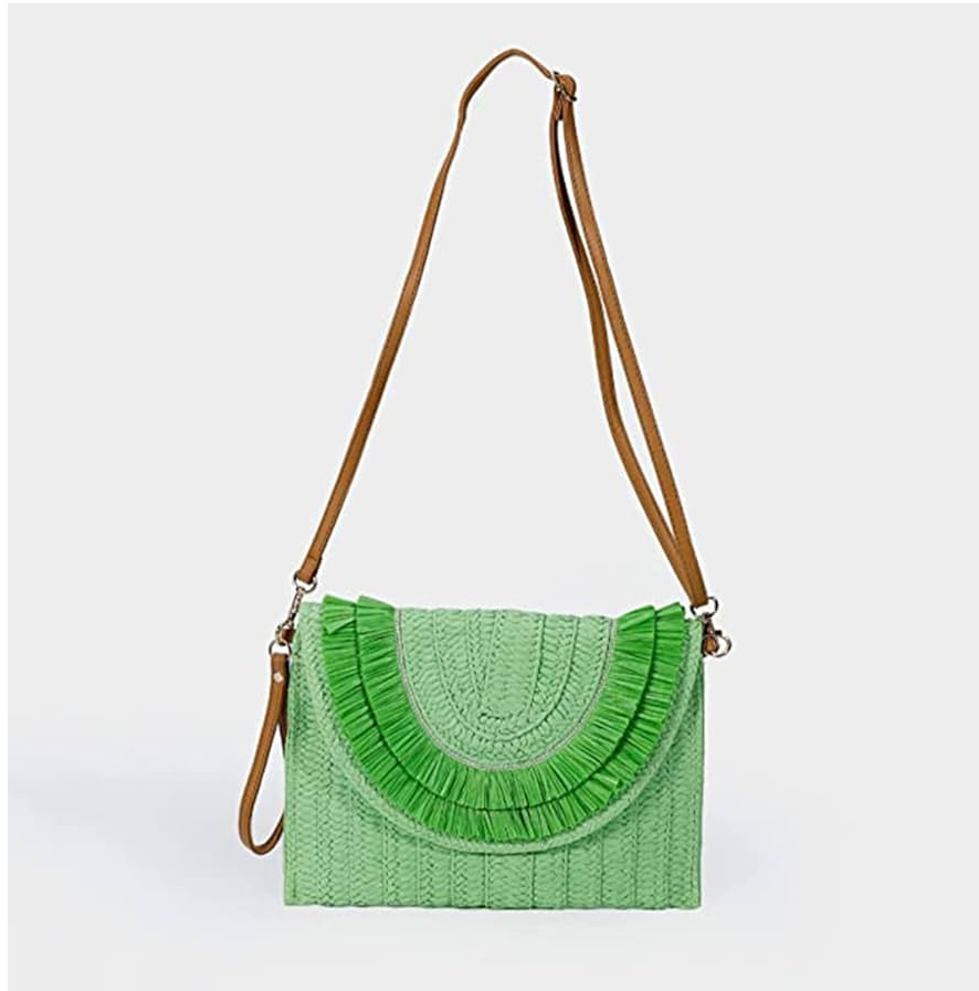 กระเป๋าชายหาดทอพู่ห้อยกระเป๋าคลัทช์แบบพกพาสำหรับผู้หญิงกระเป๋าหวายสีสันสดใสสุดหรูดีไซน์ชั้นนำ