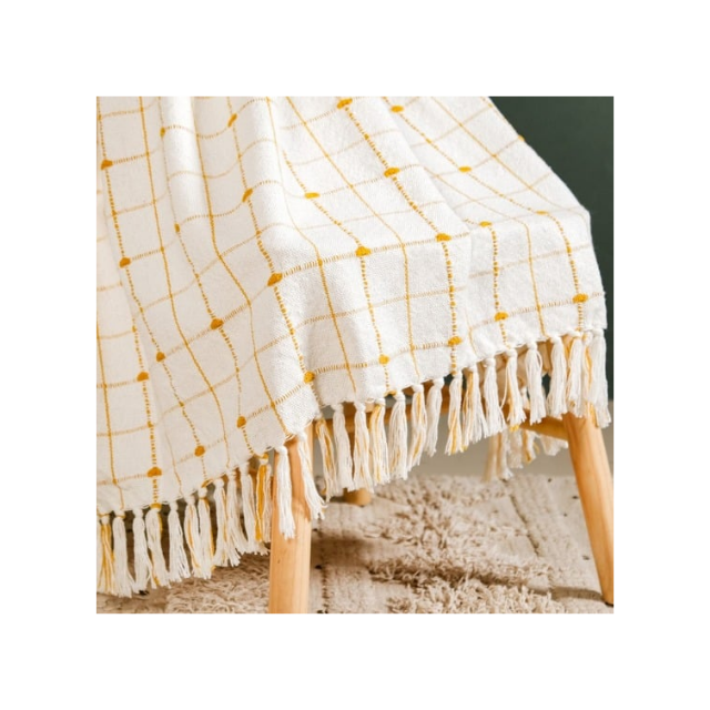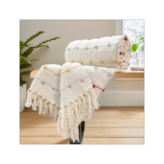ผ้าคลุมเตียงทอมือลายทวิลผสมผ้าลินิน ขนาด 50x60 นิ้ว พร้อมขอบพู่ห้อย ผ่านการรับรองจาก BCI เหมาะสำหรับการตกแต่งบ้านที่ให้สัมผัสนุ่มสบายเป็นธรรมชาติ