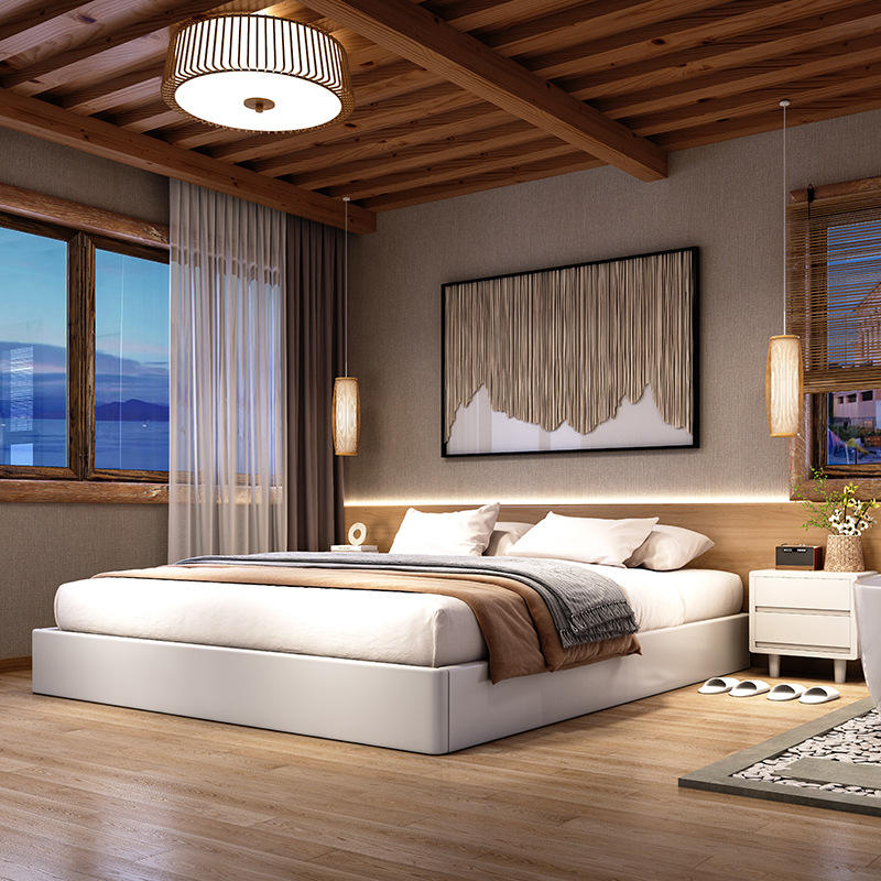 เตียงไม้ควีนไซส์ 2.2 เมตร ดีไซน์ทันสมัยแบบทาทามิ สำหรับห้องพักมาตรฐาน โฮมสเตย์ และโรงแรม
