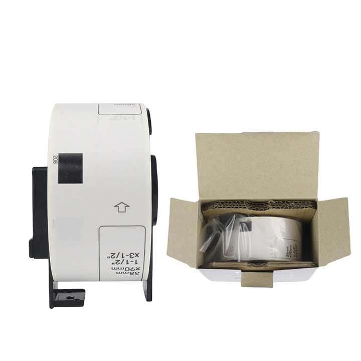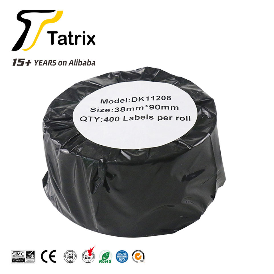 Tatrix DK11208 38มิลลิเมตรสีดำสีขาวตนเองกาวกระดาษความร้อนฉลากม้วน DK-11208สำหรับ Broter QL-500 QL-650TD เครื่องพิมพ์