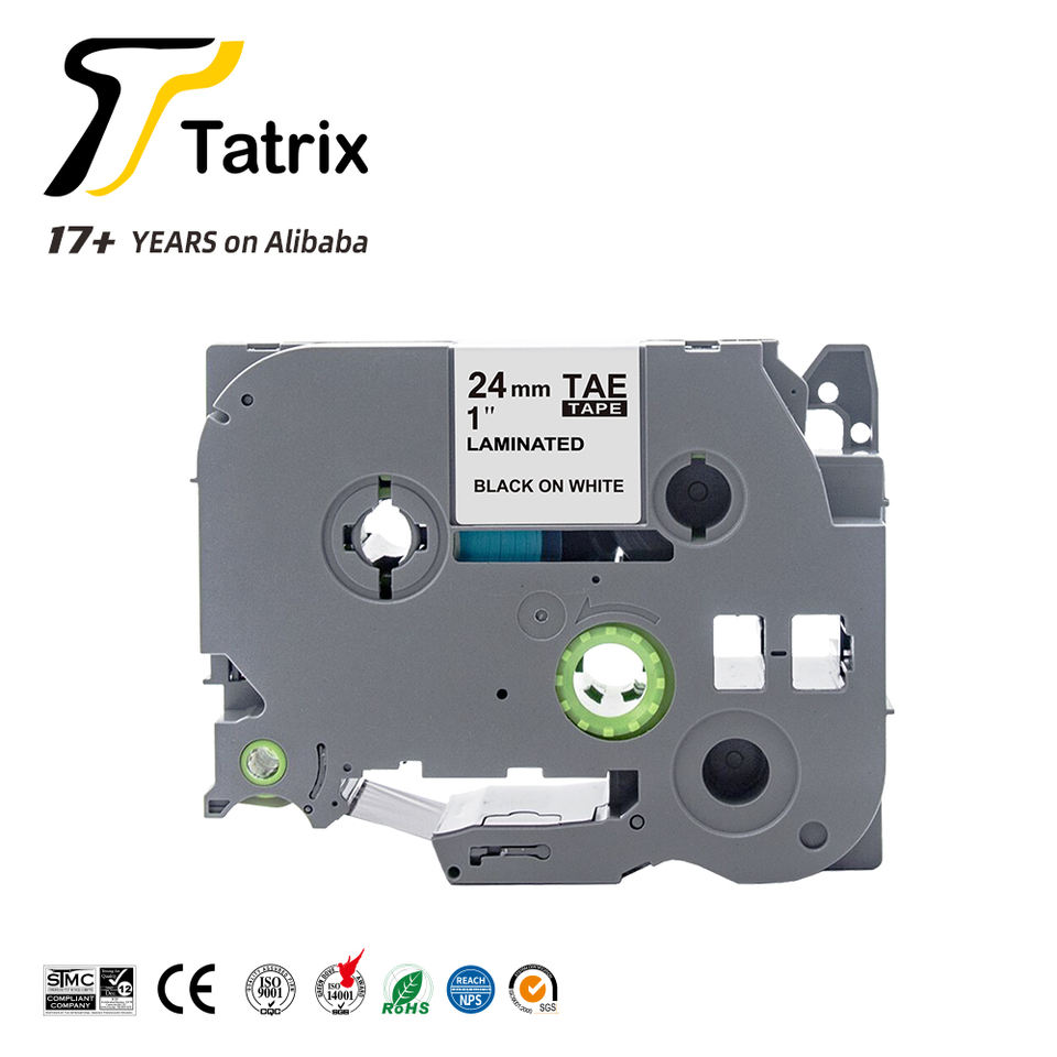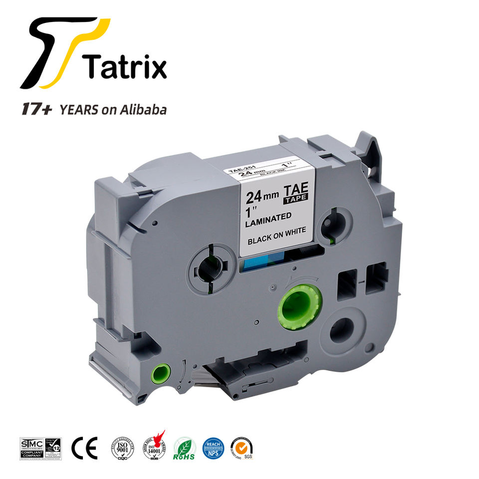 เทปฉลากเคลือบลามิเนตสีดำพื้นขาวขนาด 24 มม. รุ่น Tatrix TZ251 TZe251 TZ-251 TZe-251 ใช้ร่วมกับเครื่องพิมพ์ฉลาก Brother P Touch PT-2100