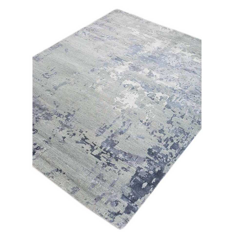 พรมทอมือลายเส้นนามธรรม Tattvam Lu-9031 สีน้ำเงิน ทำจากขนสัตว์และไหมไผ่ รูปทรงสี่เหลี่ยมผืนผ้า รุ่น CS-01