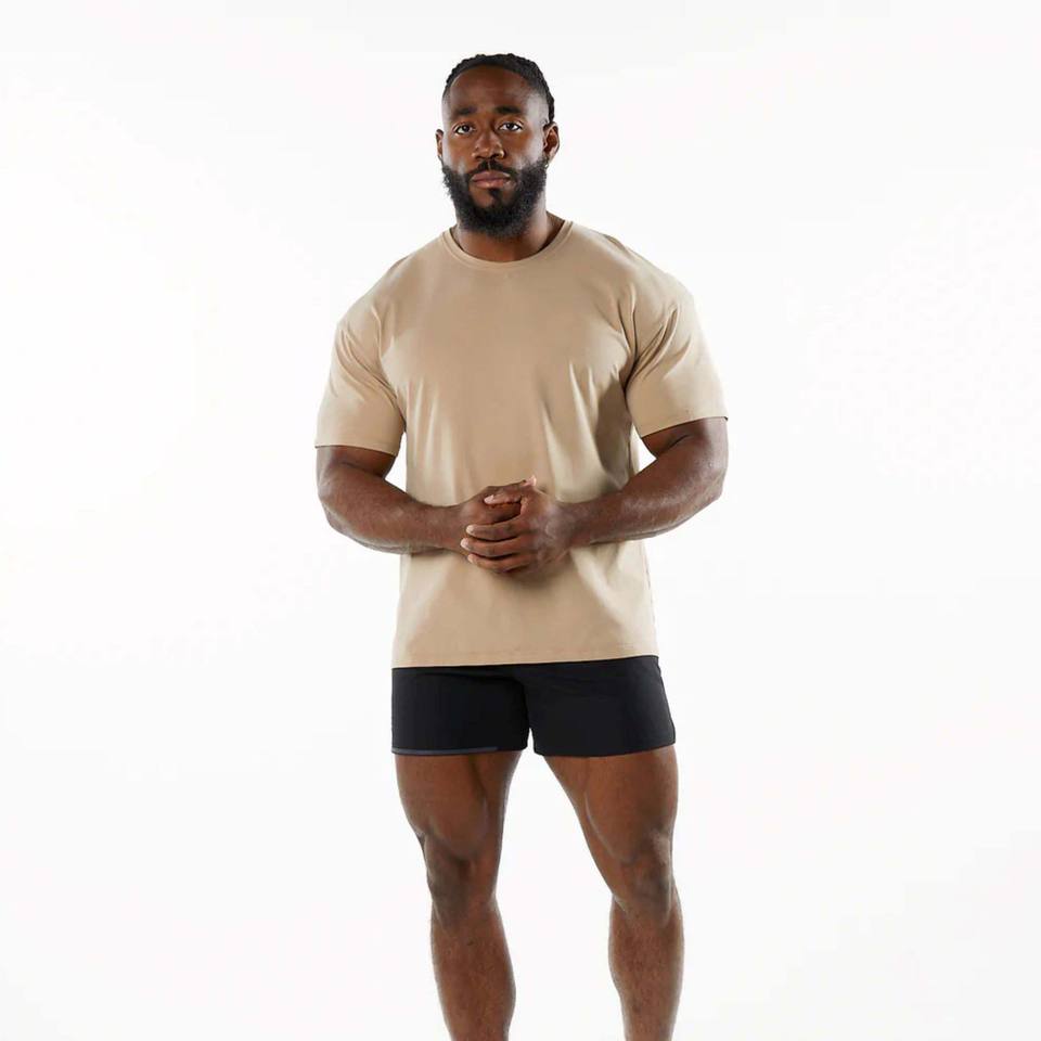 เสื้อยืดคอกลมผู้ชายผ้าคอตตอน94% 6% สแปนเด็กซ์แขนสั้น Raglan พอดีไหล่ตก