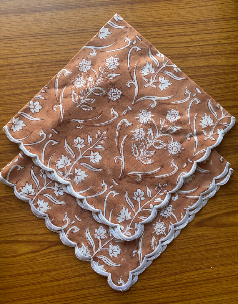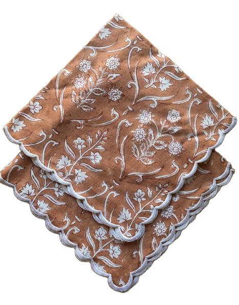 ผ้าเช็ดปากปักลายดอกไม้สีน้ำตาลอ่อนผ้าฝ้ายแท้100% แบบอินเดียสำหรับร้านอาหารโรงแรมสูง