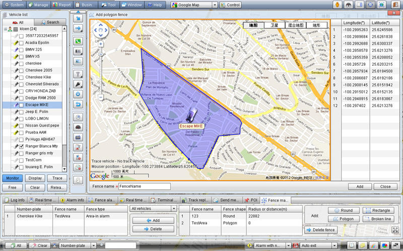 ค้นหา/มอนิเตอร์/ประกาศแจ้งเตือน/รั้วทางภูมิศาสตร์/ผู้จัดจำหน่ายแผนที่/การเล่นซ้ำ