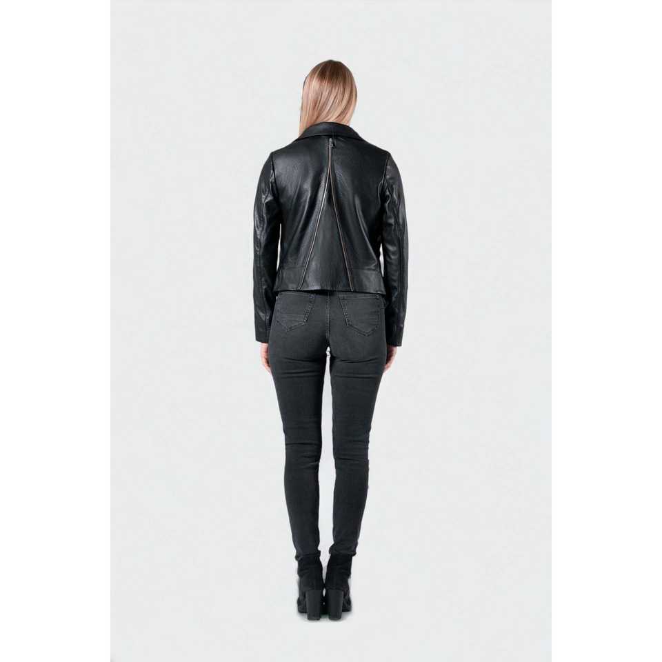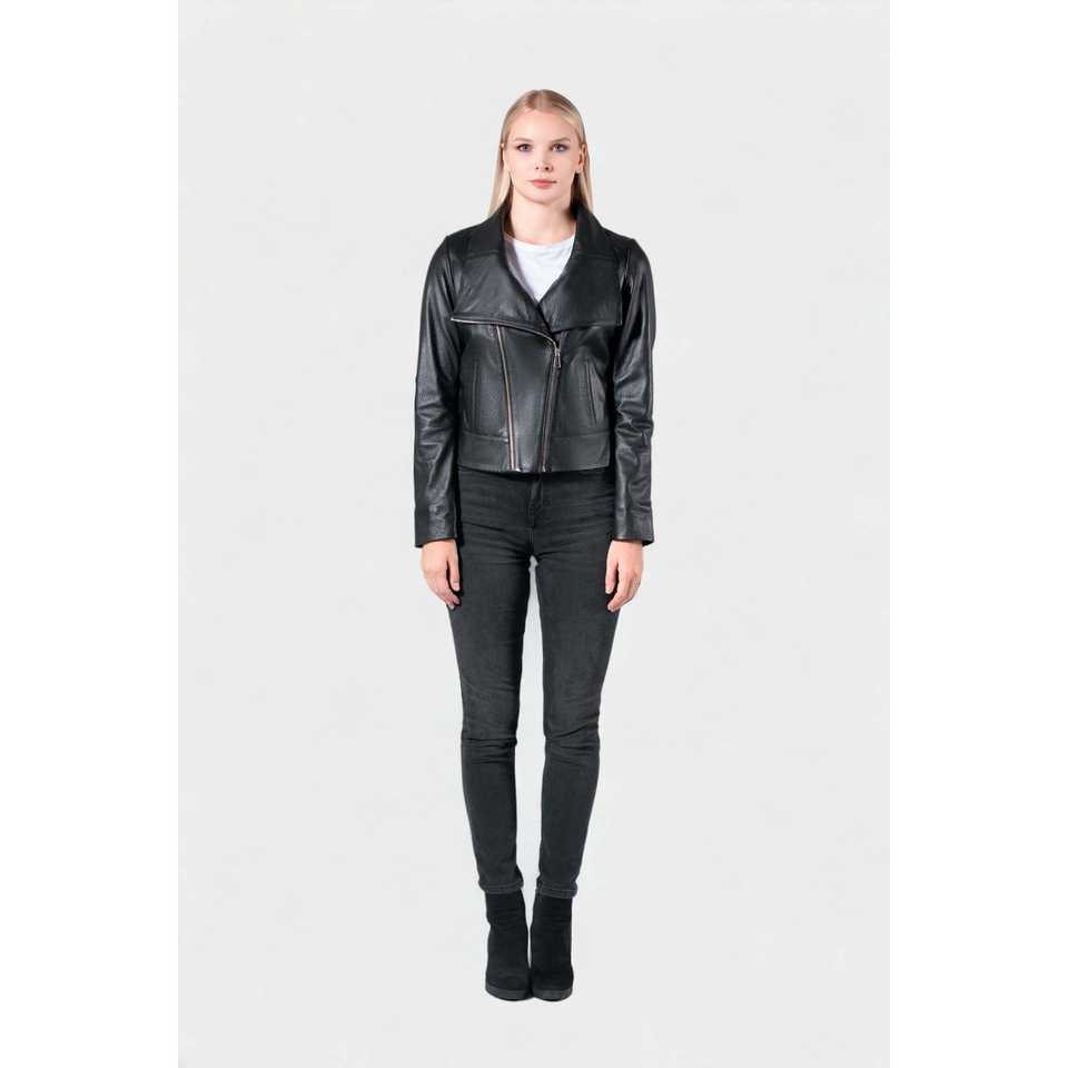 เทย์เลอร์แจ็กเก็ตหนังแท้มีซิปของผู้หญิงตกแต่งทันสมัย