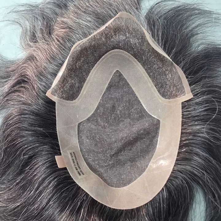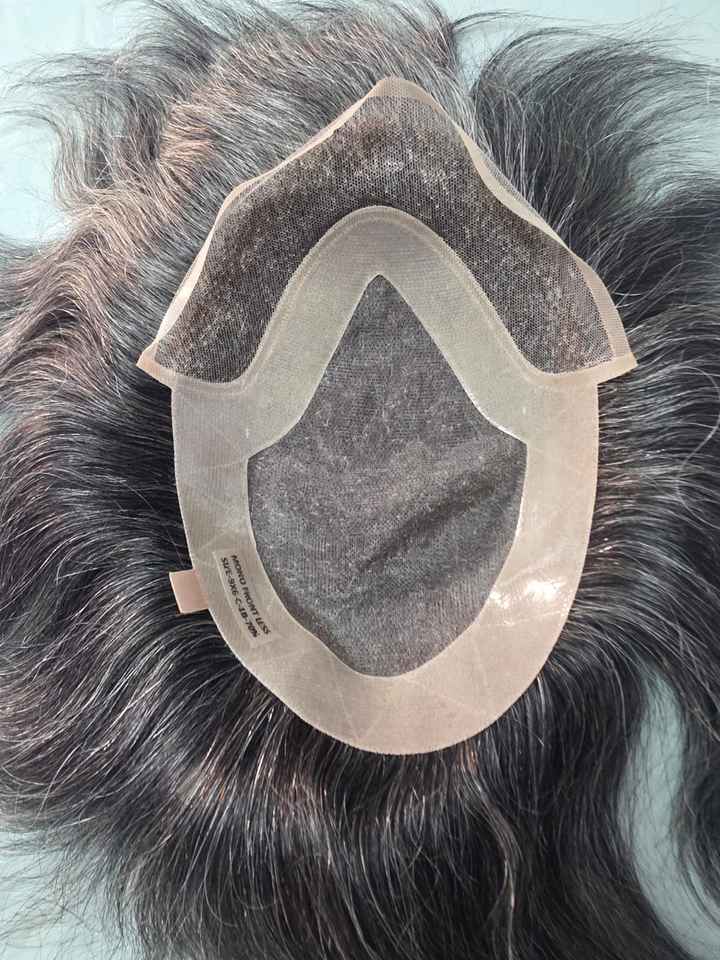 Taz Hair BD Fusion Hand Tied Weft Remy Human Hair Toupee Wig Front Lace Base Mix Color 1B Gray Hair Patches Prosthesis Capilar