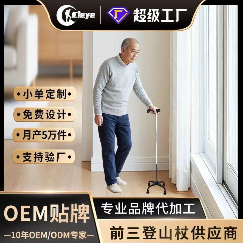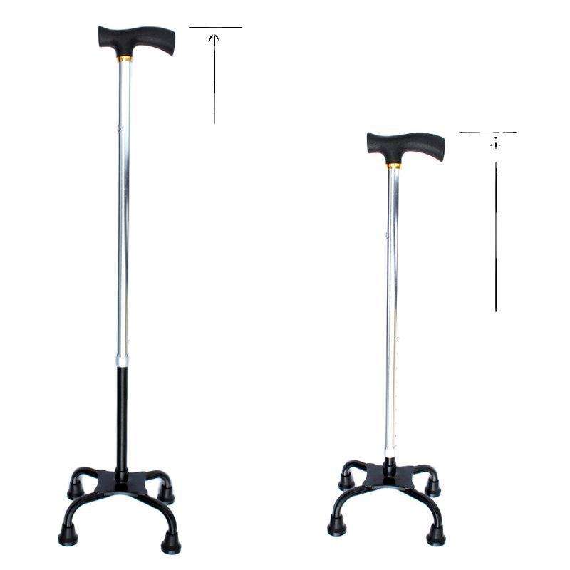 ไม้เท้าปรับระดับได้สี่ขาแบบยืดหดได้ สีเงิน สำหรับผู้สูงอายุ ช่วยพยุงเดิน รุ่น Tea Fat Big Four