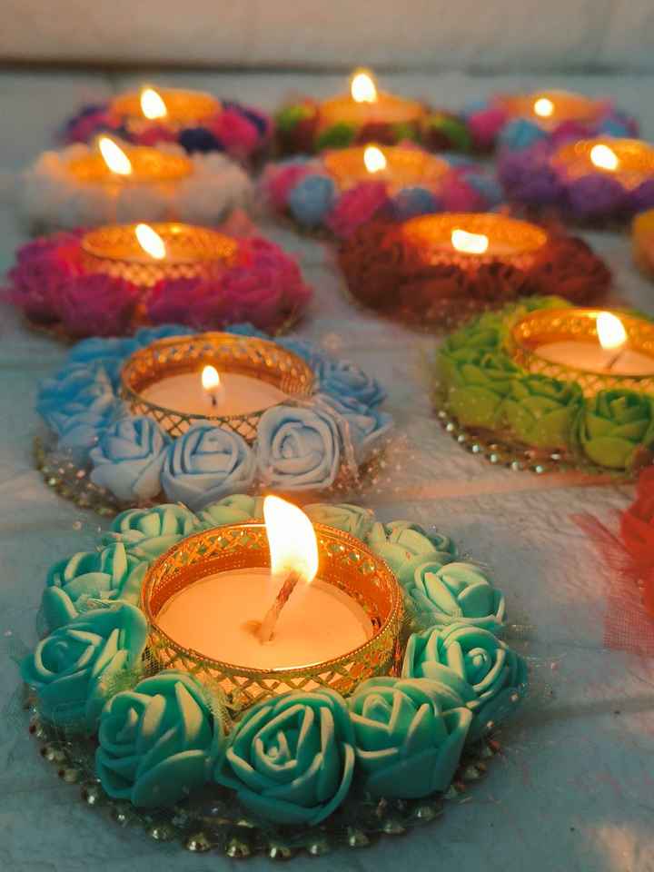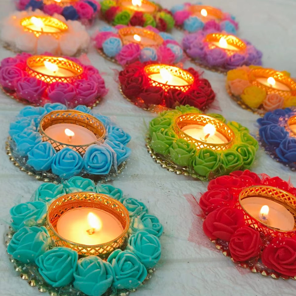 ที่ใส่เทียนรูปดอกไม้สำหรับเทศกาลดิวาลีของตกแต่งบ้านสีสันทันสมัยของขวัญงานเลี้ยงวันเกิดสำหรับแขกงานแต่งงาน