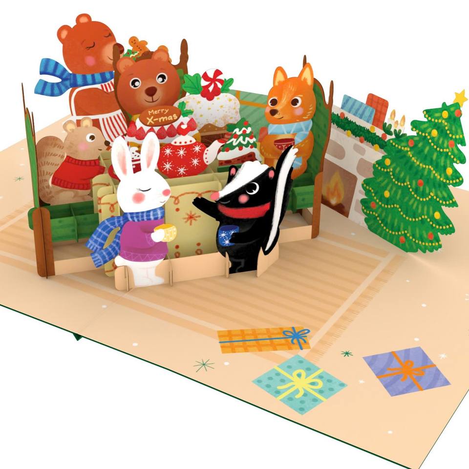 การ์ดอวยพรป๊อปอัพ 3 มิติ ลายธีมงานเลี้ยงน้ำชาคริสต์มาส พร้อมซองจดหมาย - งานฝีมือกระดาษ