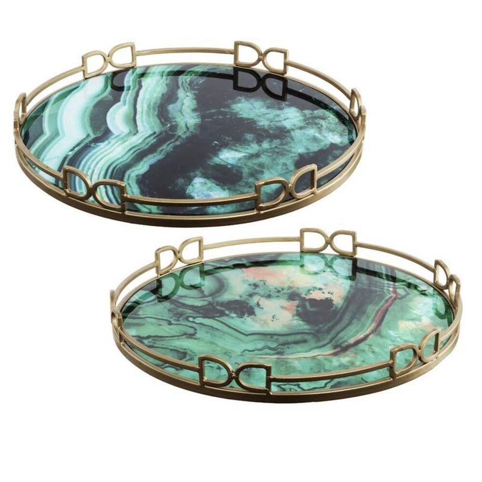 ถาดเสิร์ฟชาถาดเสิร์ฟพร้อมถาดรองแก้วทำจากเรซิ่นพร้อมด้ามทองเหลืองถาดเครื่องประดับในครัว