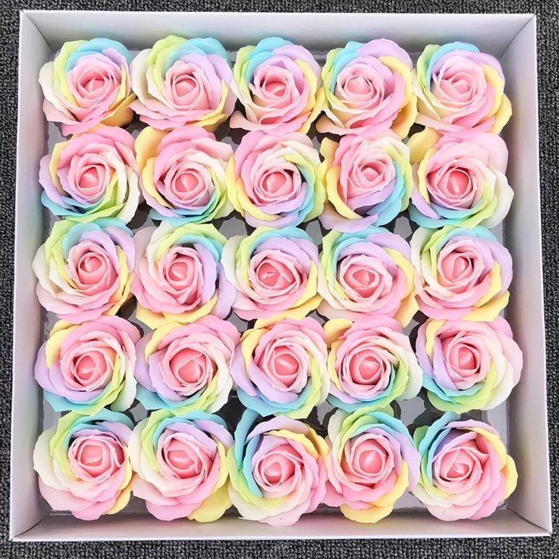 ดอกกุหลาบสบู่หลากสีสันสำหรับวันครู ชุดทำช่อดอกไม้ในกล่องของขวัญ ดอกกุหลาบสบู่หลากสี