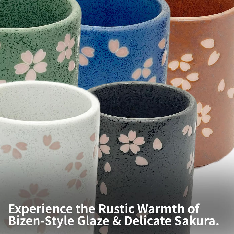 แก้วน้ำลายดอกซากุระ ลายหินอ่อน ขายส่ง เครื่องเซรามิกญี่ปุ่น งานเผาแบบยามากิ ของขวัญทางธุรกิจ ลายดอกไม้