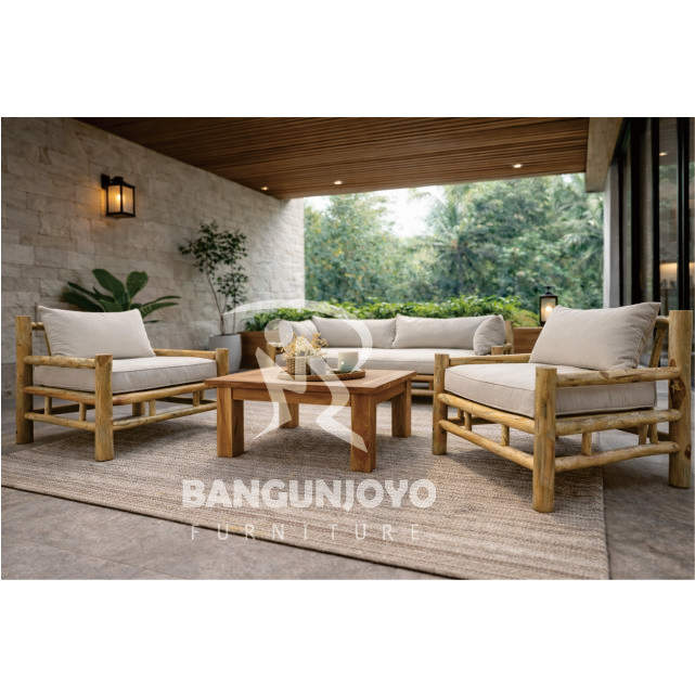 ชุดโต๊ะกาแฟและโซฟาเบดไม้สักแท้สไตล์ร่วมสมัย สำหรับใช้งานกลางแจ้ง