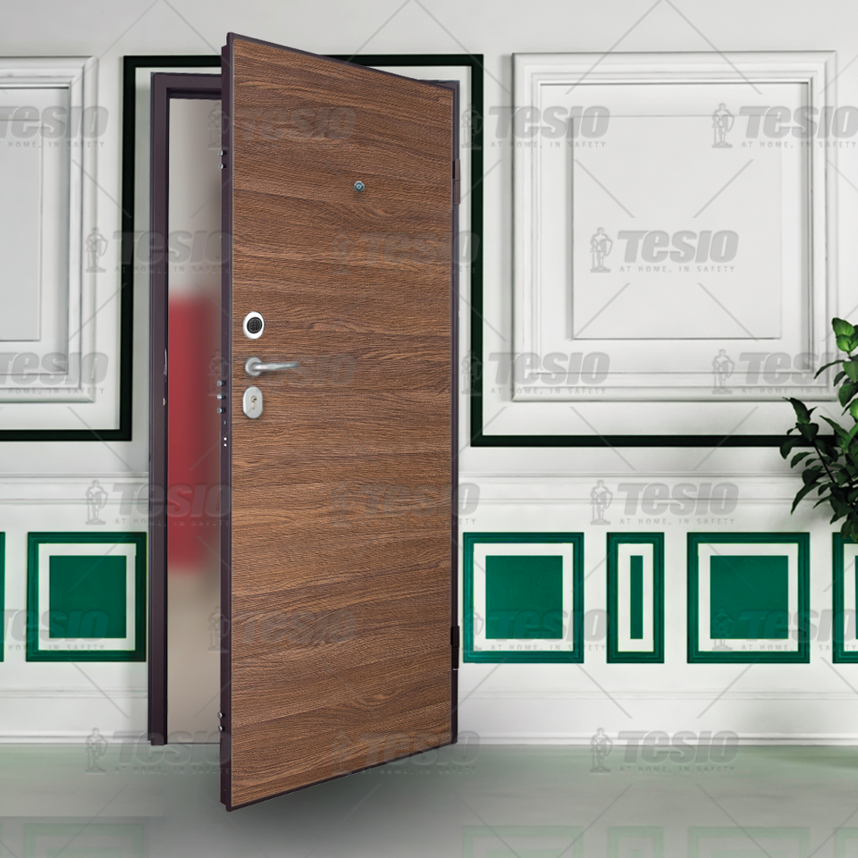 ประตูไม้สัก Pantographed SW021 - ฉนวนกันเสียง 40dB ที่แข็งแกร่ง - ภายในเมลามีนวอลนัทพร้อมรายละเอียดสีเงิน