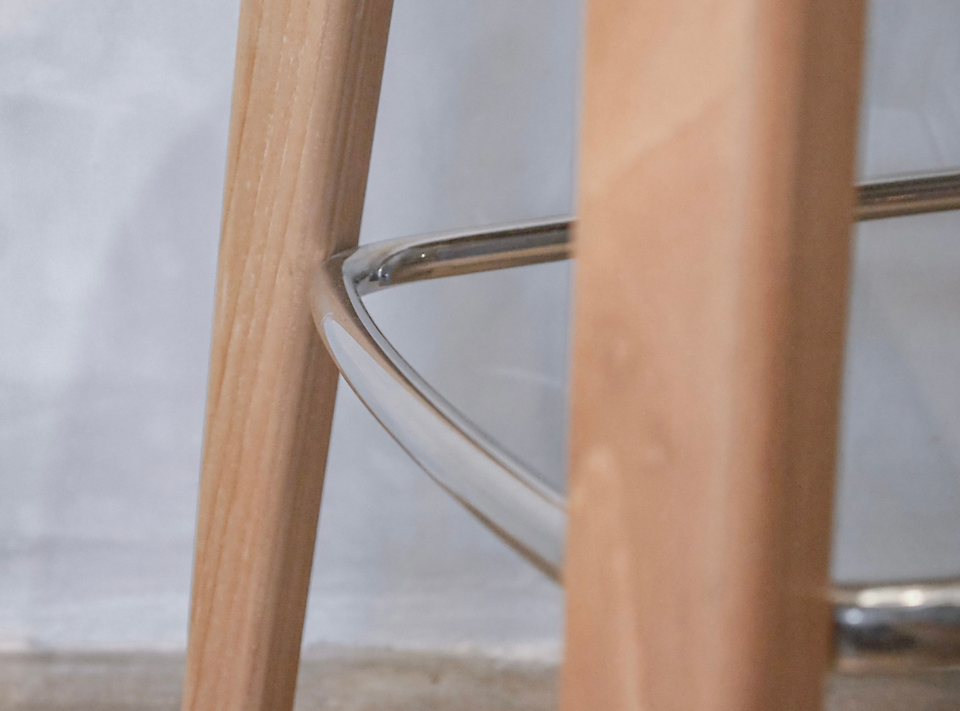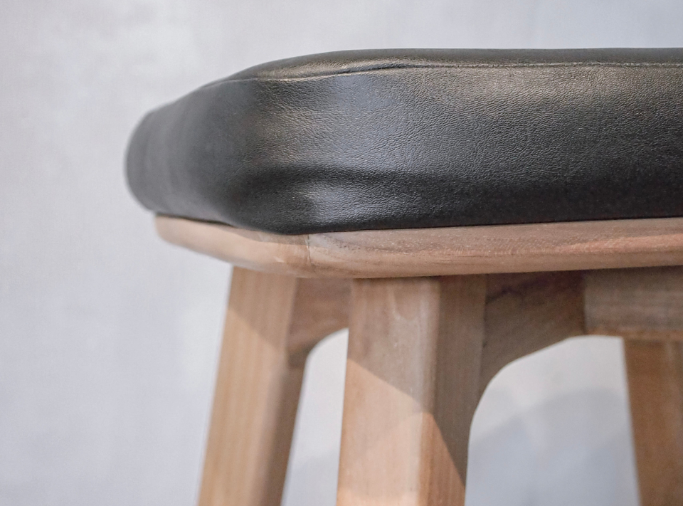 เก้าอี้เคาน์เตอร์หนังเทียมโลหะไม้สัก, เก้าอี้เคาน์เตอร์บาร์ห้องครัวที่ทันสมัยเบาะรองขาสแตนเลสออกแบบเป็นเอกลักษณ์คาเฟ่ร้านอาหาร