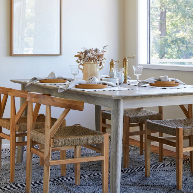 เก้าอี้รับประทานอาหารเชือกไม้สัก พนักพิงไม้สักโค้ง ที่นั่งเชือกธรรมชาติทอมือ เฟอร์นิเจอร์ไม้เนื้อแข็งทอมือทันสมัยเป็นมิตรกับสิ่งแวดล้อม สำหรับอพาร์ทเมนต์