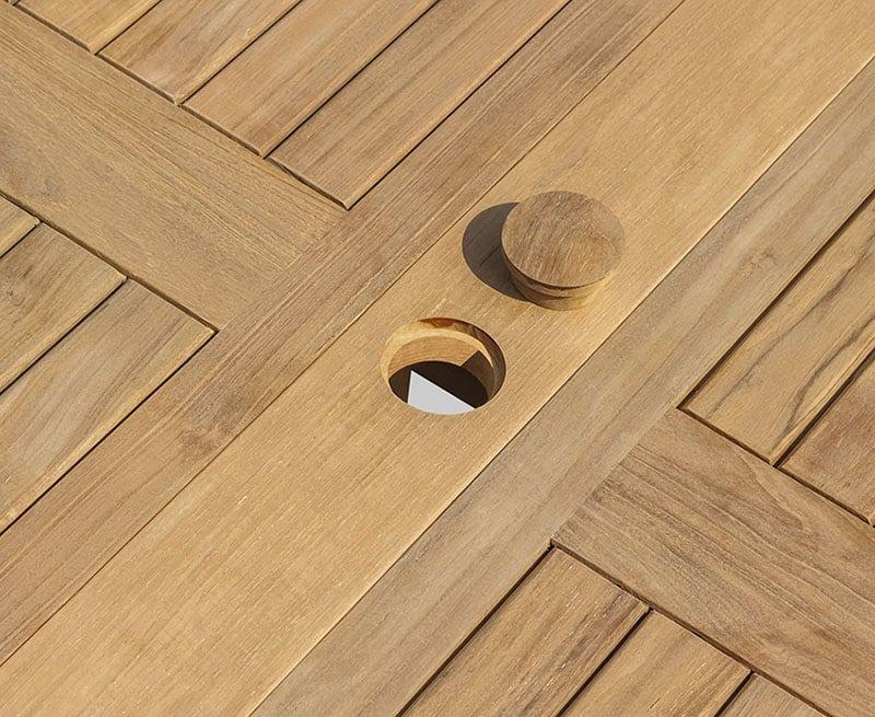 โต๊ะกลมพับได้ไม้สักแท้ขนาด 1 เมตร กันน้ำ ทนทาน ป้องกันรังสียูวี วางซ้อนกันได้ เหมาะสำหรับร้านอาหารกลางแจ้งและโรงแรม