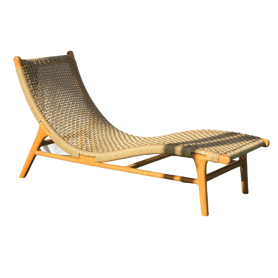 เก้าอี้อาบแดดไม้สักแท้รุ่นซิโลซา พร้อมเบาะกันแดด หุ้มด้วยหวายสังเคราะห์สีธรรมชาติ