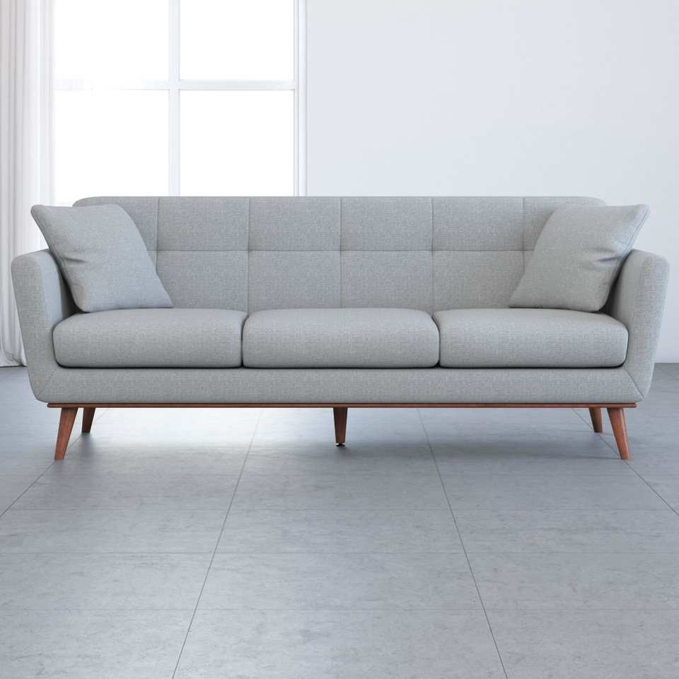 โซฟาไม้สักสามที่นั่งพร้อมเบาะพิงหลังแบบมีโครงสร้างและดีไซน์ทันสมัย