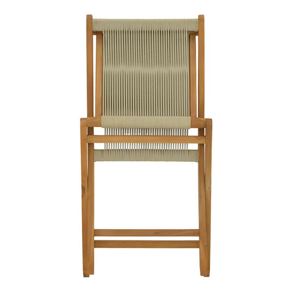 เก้าอี้ไม้สักพร้อมเชือกถัก ตกแต่งสีไม้ธรรมชาติ สำหรับร้านอาหารสมัยใหม่ ใช้สำหรับรับประทานอาหารกลางแจ้ง