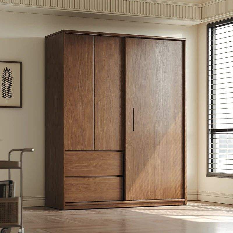 ตู้เสื้อผ้าไม้สักพร้อมบานเลื่อนและลิ้นชักเก็บของ