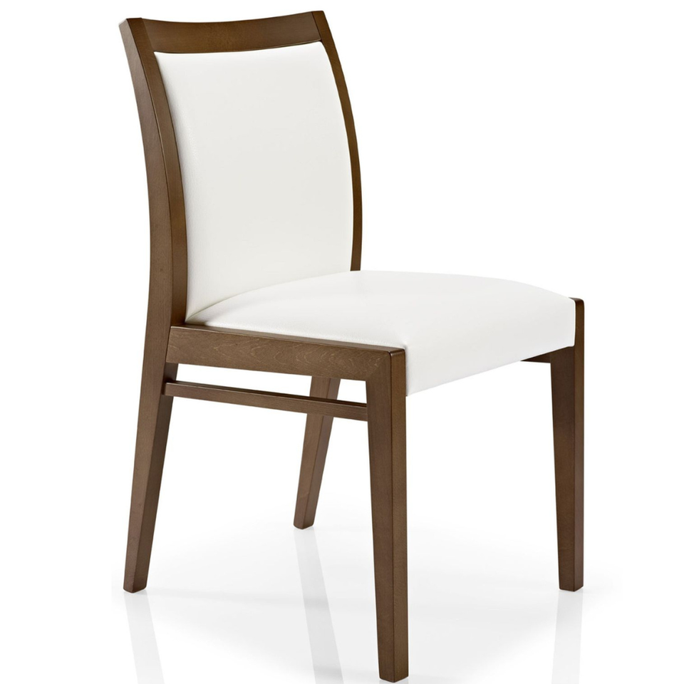 เก้าอี้รับประทานอาหารไม้สักสไตล์ร่วมสมัยพร้อมเบาะนั่งบุนวมและพนักพิงสูง
