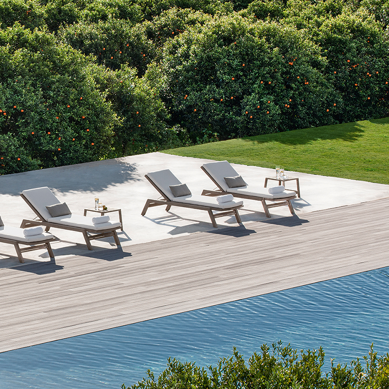 Teak Wood Frame Luxurious Design Sun Lounger Outdoor Beach Chaise Quick-Dry Foam Chair for Swimming Pool