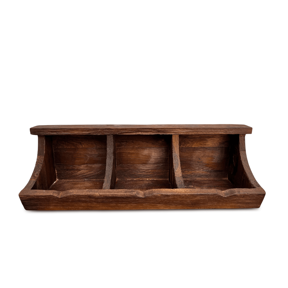 ชั้นวางเครื่องเทศในครัวทรงสี่เหลี่ยมผืนผ้าไม้สักแบบมินิมอล - 3 ช่อง ผลิตด้วยมือและเป็นมิตรกับสิ่งแวดล้อม