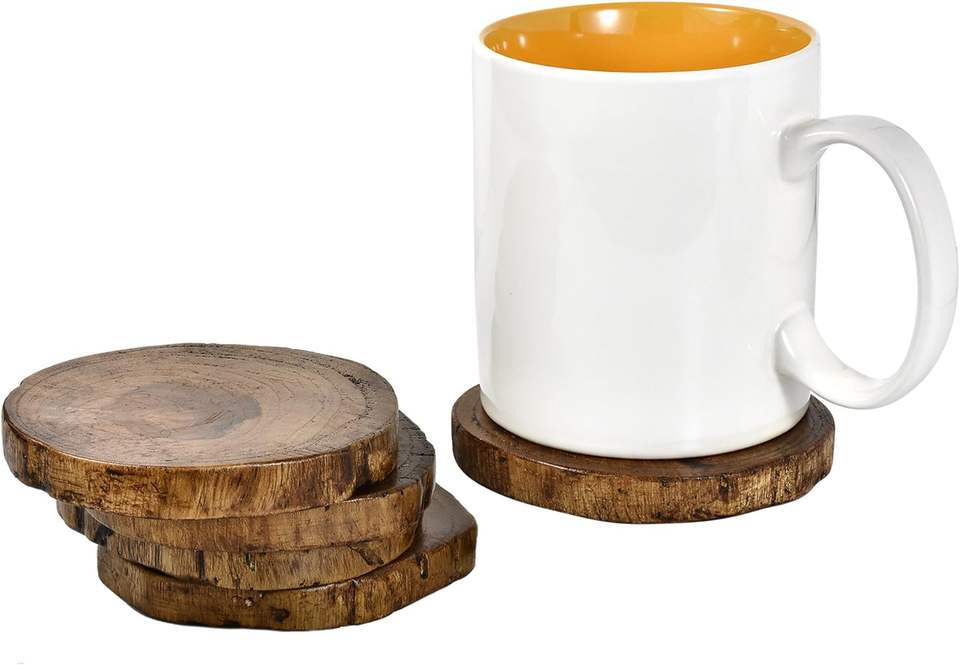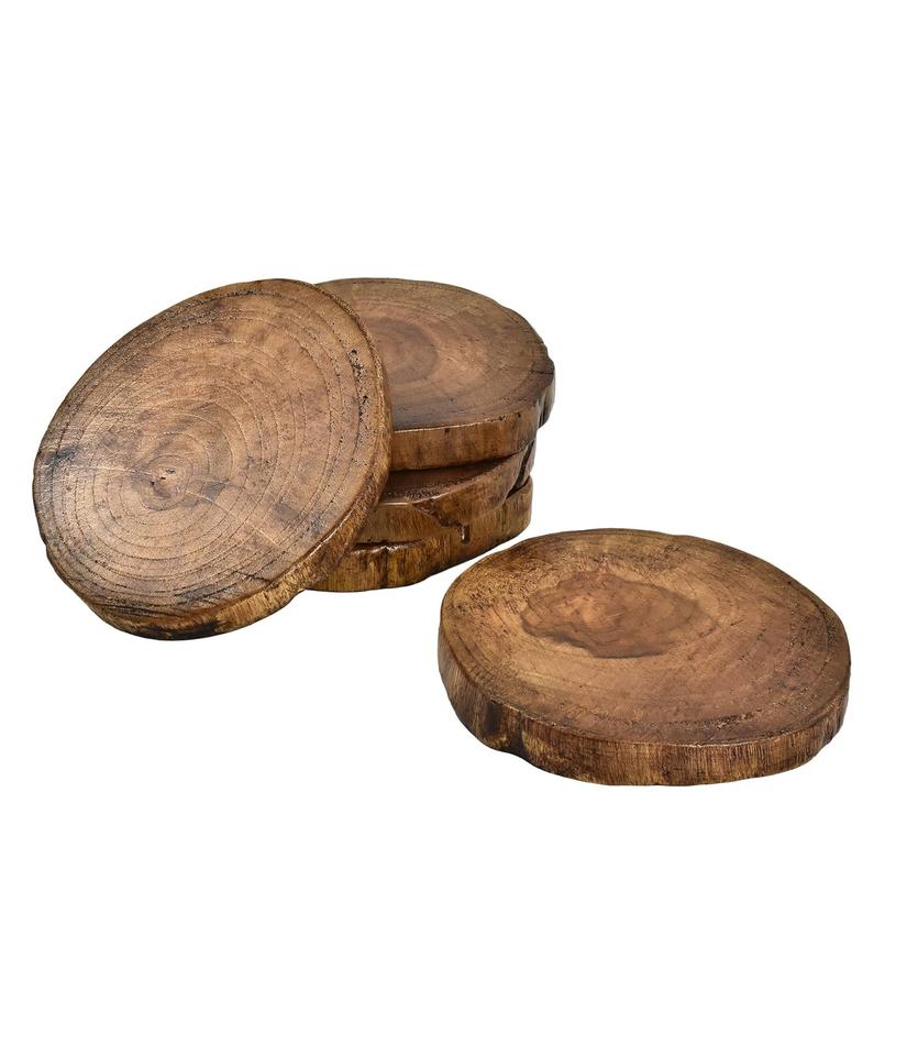 ชุดแผ่นรองแก้วไม้สักจากเปลือกไม้ธรรมชาติ 5 ชิ้น แผ่นรองแก้วไม้ทรงกลมสำหรับเครื่องดื่ม