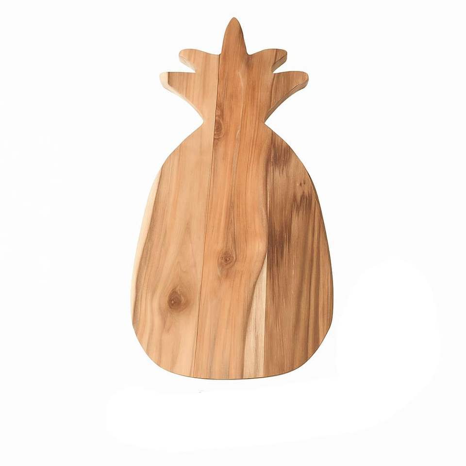 เขียงไม้สักรูปสับปะรดเขียงเขียงเขียงที่เสิร์ฟบนเขียงสับไม้ไม่ย้อมสีหรือขัดเงาเคลือบเงาตามธรรมชาติ