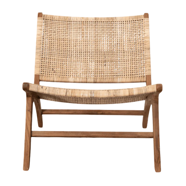 Teak Wood Reclining Lounge Chair Lazy Garden Chairs with Rattan Back for Outdoor Garden Furniture By Rachel Natalie