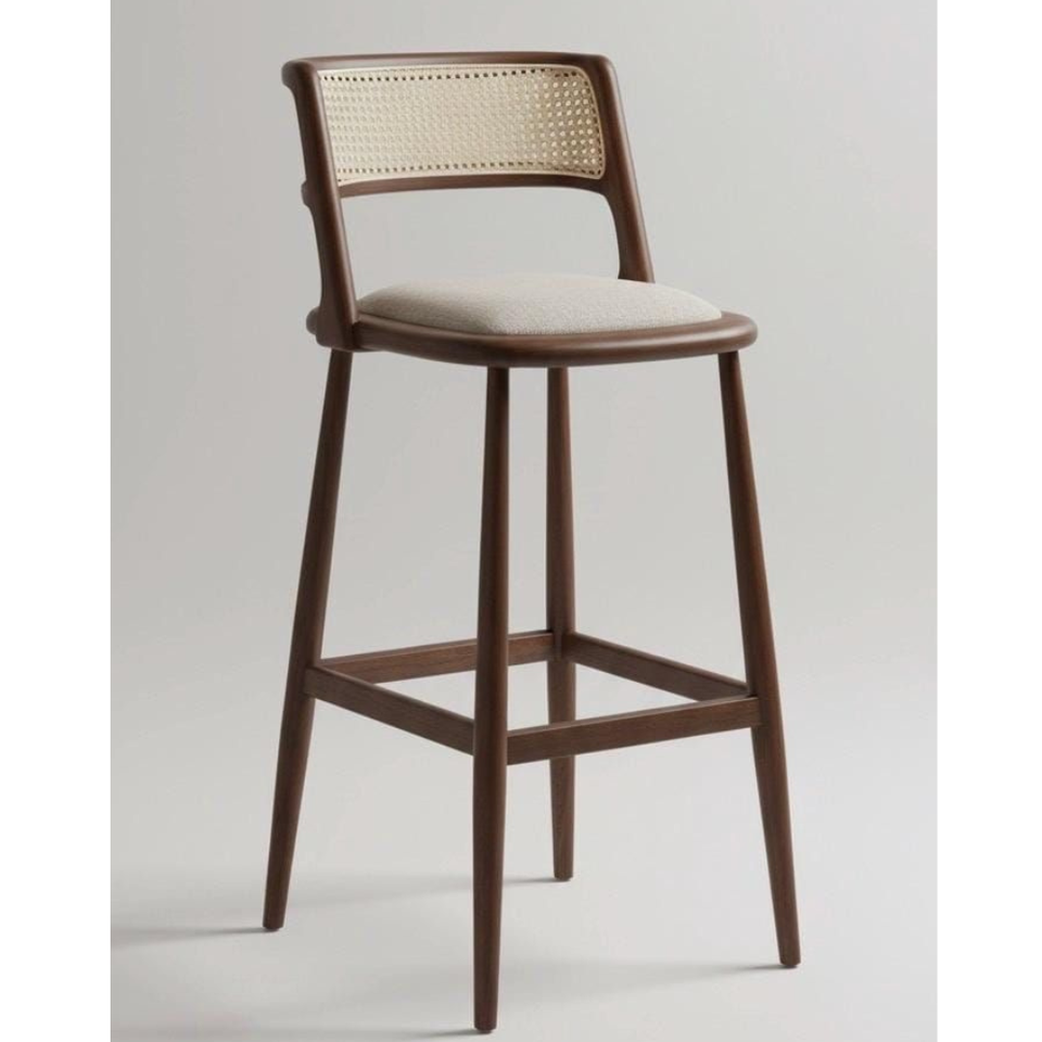 เก้าอี้บาร์ไม้สักแท้พร้อมหวายธรรมชาติ