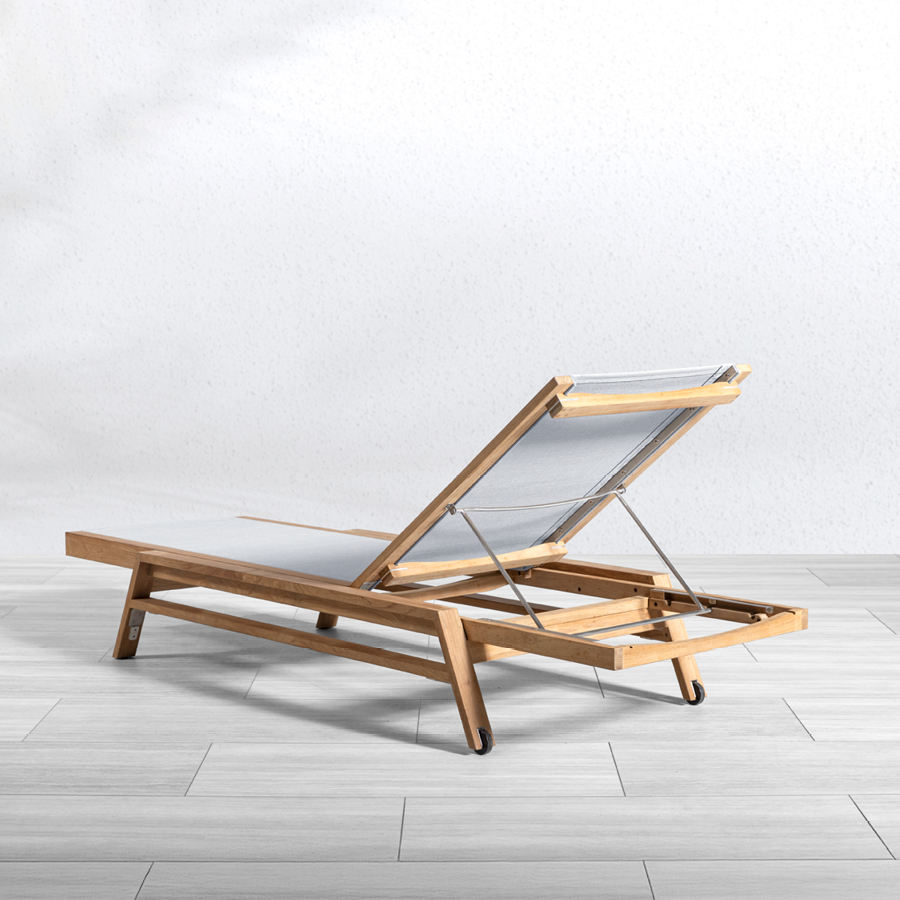 Teak Wood Sun Lounger with Sling Fabric Modern Eco-Friendly UV Resistant Outdoor Pool Daybed for Hotels and Villas