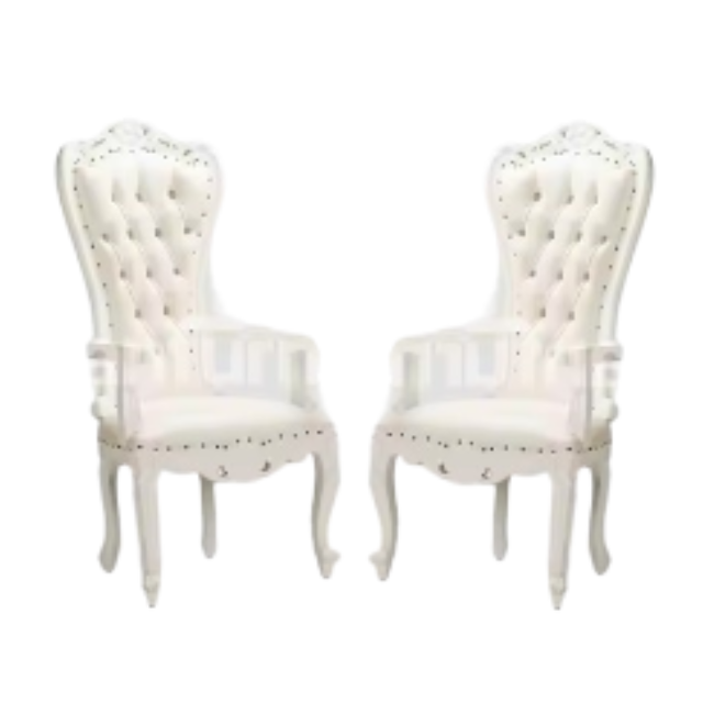 เก้าอี้บัลลังก์ไม้สักสำหรับห้องนั่งเล่นเก้าอี้โซฟาหรูหราสีขาวด้านหลังสูงเฟอร์นิเจอร์หรูหรา