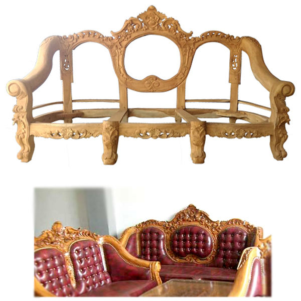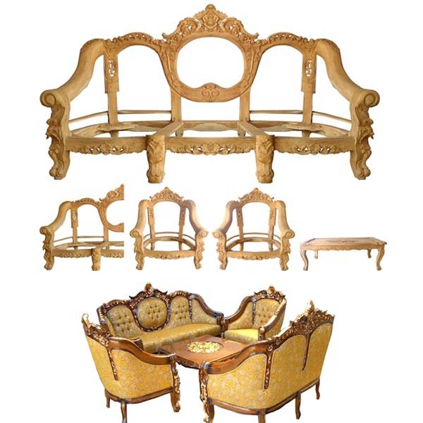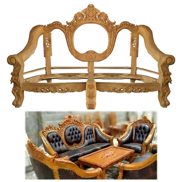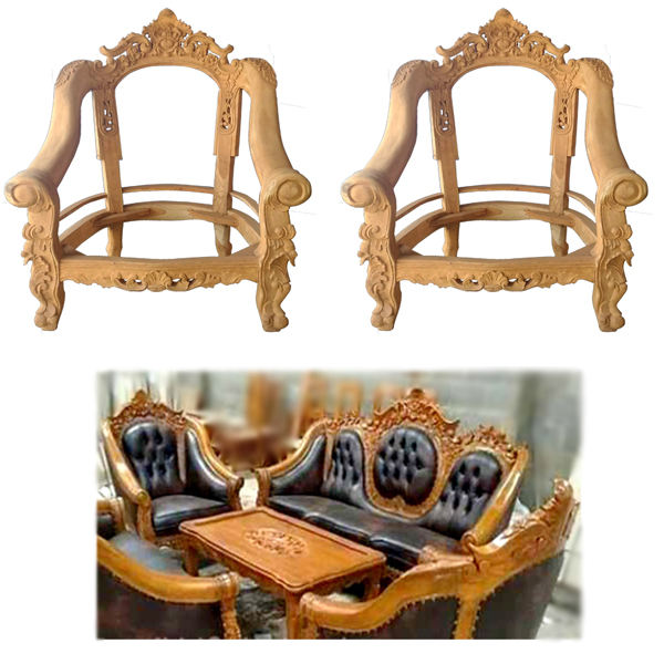 เก้าอี้โซฟาไม้สักแกะสลักเฟอร์นิเจอร์ห้องนั่งเล่นผลิตภัณฑ์ที่ยังไม่เสร็จ KD ไม่มีสีสำหรับชุดเฟอร์นิเจอร์ห้องนั่งเล่น28