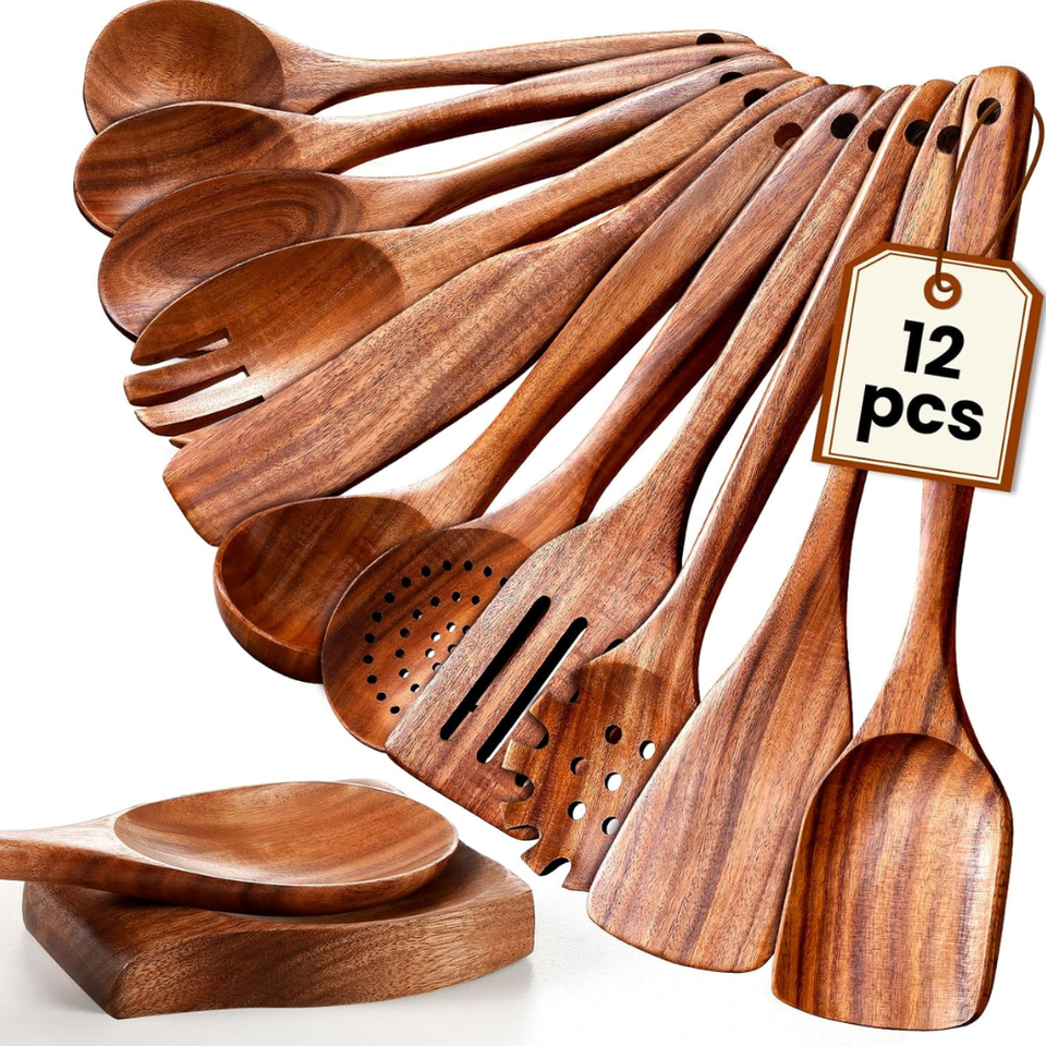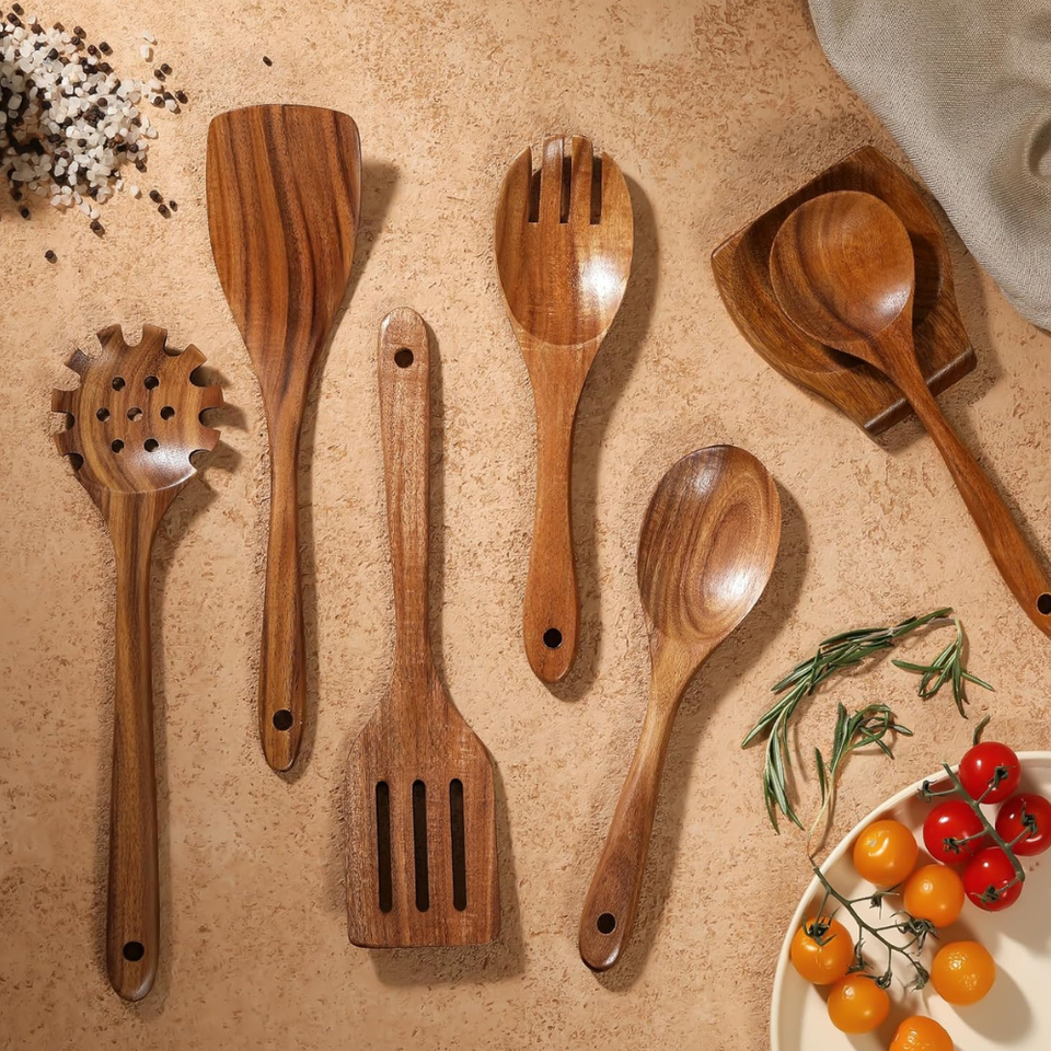 ชุดช้อนไม้สักชุดช้อนไม้พร้อมที่จับสบายเครื่องใช้ในครัวทนความร้อนชุดทำอาหารจากเวียดนาม