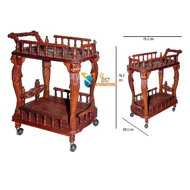 Teak Wooden Hand Carved Food Service TrolleyProduct name