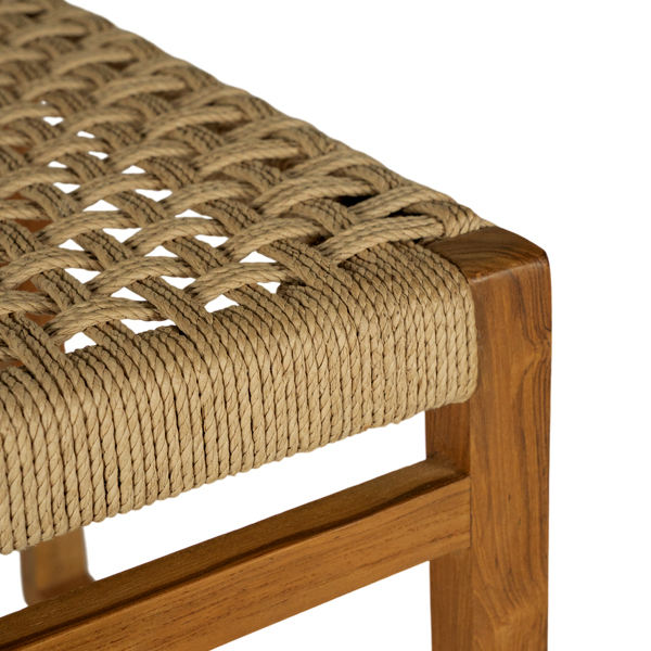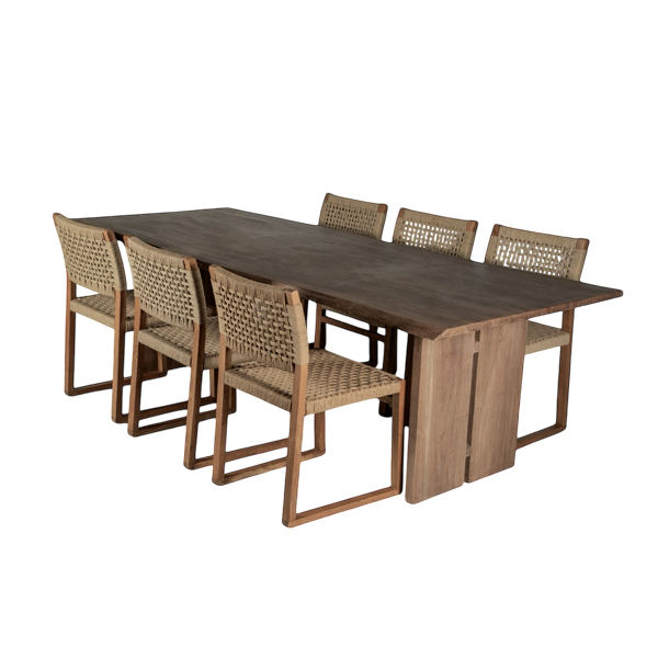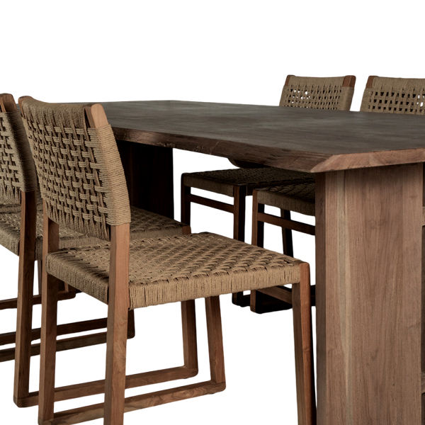 ชุดโต๊ะรับประทานอาหารไม้สัก 6 ที่นั่ง พร้อมโต๊ะ 1 ตัว ตกแต่งแบบธรรมชาติ พร้อมเบาะเชือก สำหรับใช้ภายในและภายนอกอาคาร