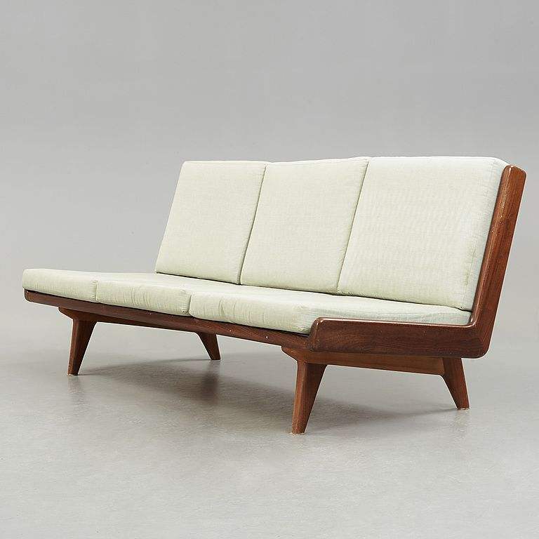 โซฟาไม้สักสไตล์มินิมอล ขาเรียวพร้อมพนักพิงบุนวม