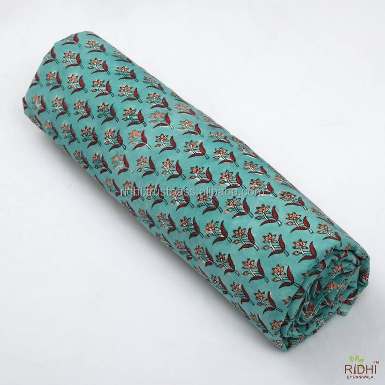 Ridhi ชุดเดรสผ้าฝ้าย100% สำหรับผู้หญิงที่นอนงานฝีมือสีฟ้าลายมะฮอกกานีแซลมอนสีชมพู