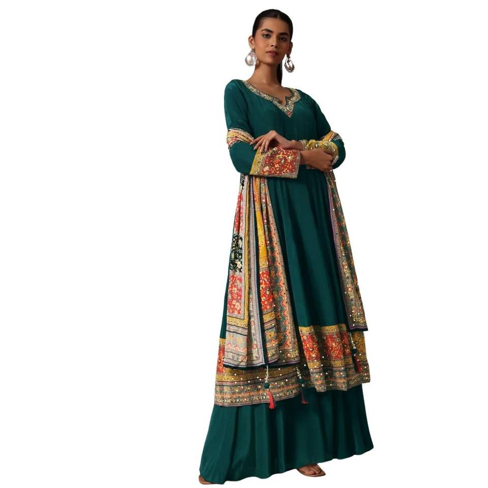 Kurta Palazzo ชุดปักลายนกเป็ดน้ำมีกระจกชุดทำงานชุดตามสั่ง
