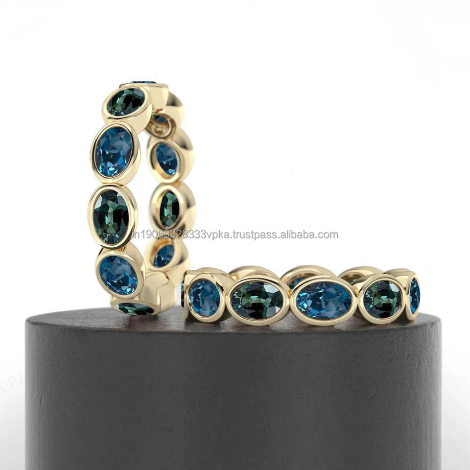 TEAL Sapphire eernity band สำหรับผู้หญิง East TO West London Blue Topaz Wedding band Silver Multi BEZEL set BAND