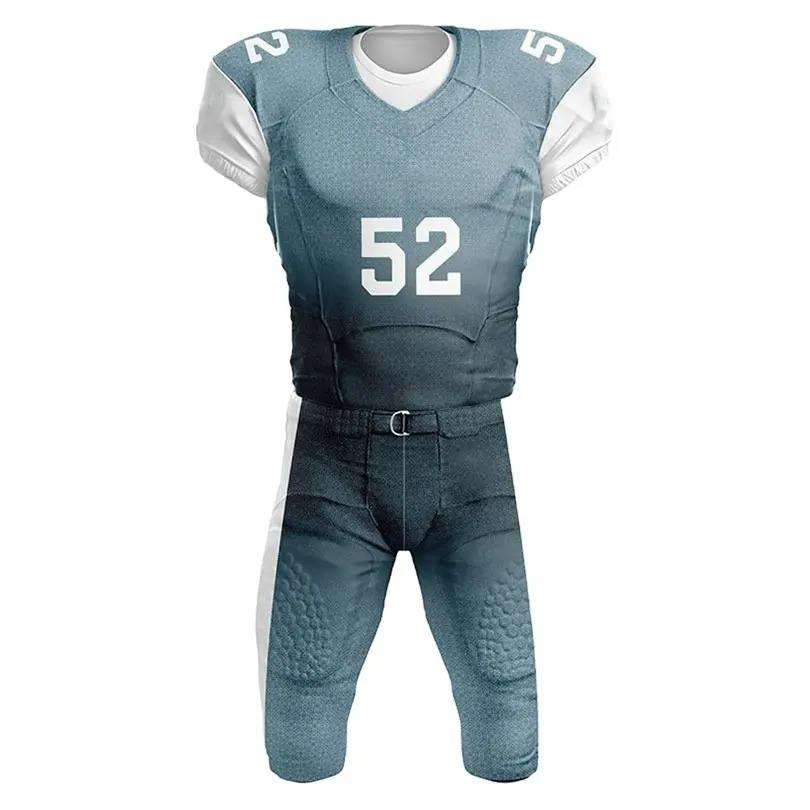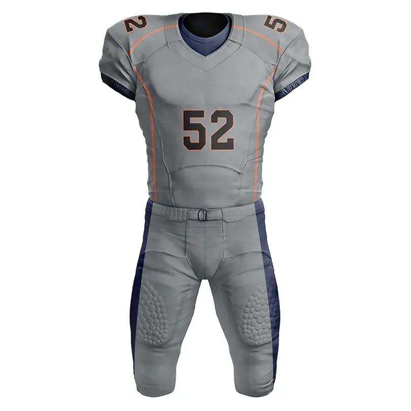 ชุดฟอร์มฟุตบอลอเมริกันสำหรับผู้ใหญ่ชุดยูนิฟอร์มฟุตบอลอเมริกันผ้าโพลีเอสเตอร์100% สไตล์ล่าสุด